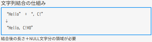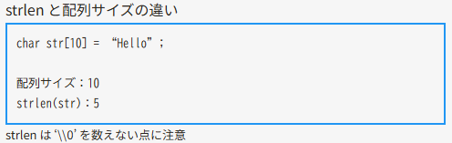 - C言語の文字列は char 型の配列であり、必ず NULL 文字で終わる