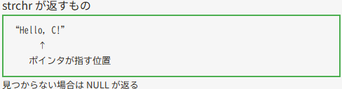 }strchr は最初に見つかった文字のポインタを返します。見つからなかった場合は NULL