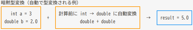 これを暗黙型変換(implicit cast)と呼びます